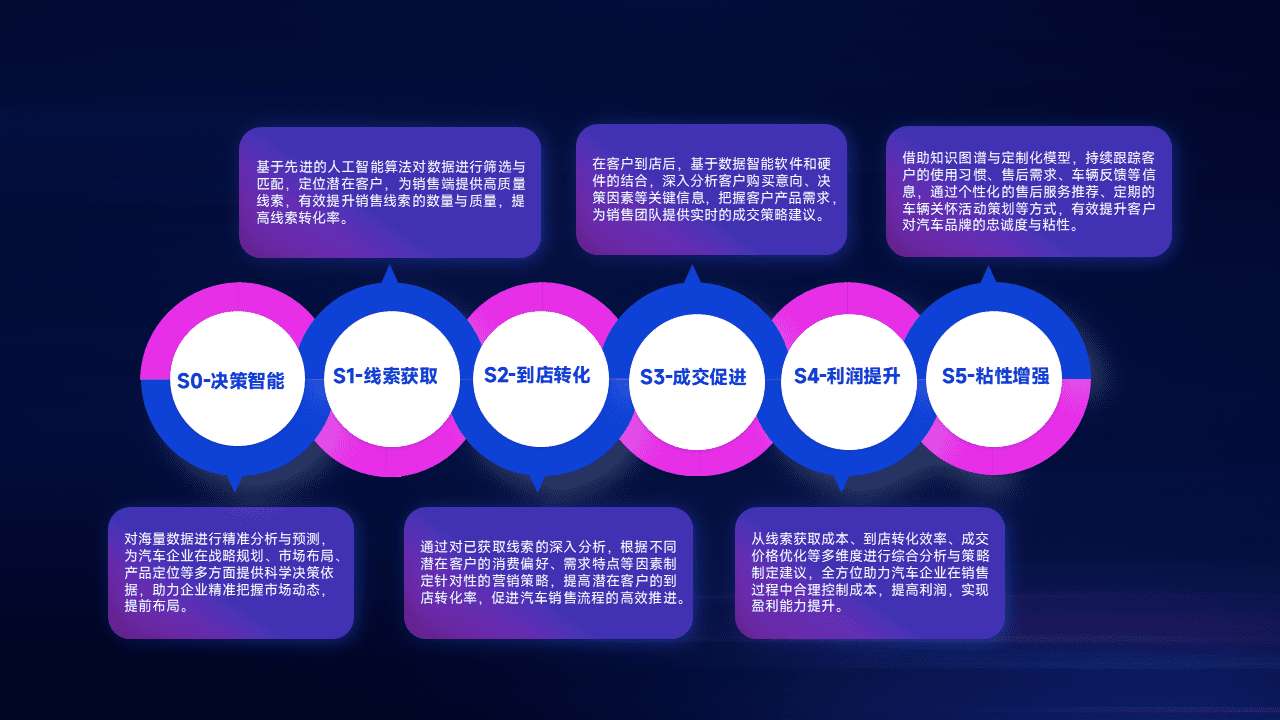 通过拓宽潜在客户来源、、优化线索分配并提高到店转化率,,,以增强销售效率。。。同时,,,,利用线索数据不断优化分析模型,,,有效提升转化率,,扩大营销影响力。。